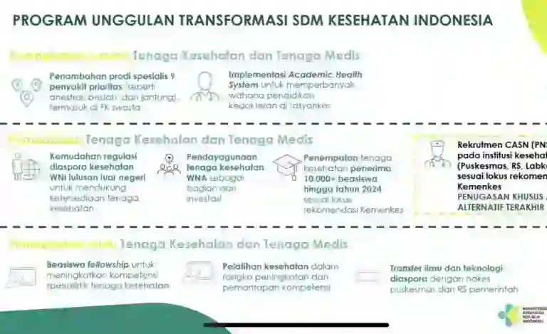 - Program Nusantara Sehat – Penempatan tenaga kesehatan di daerah terpencil dengan insentif yang lebih baik.